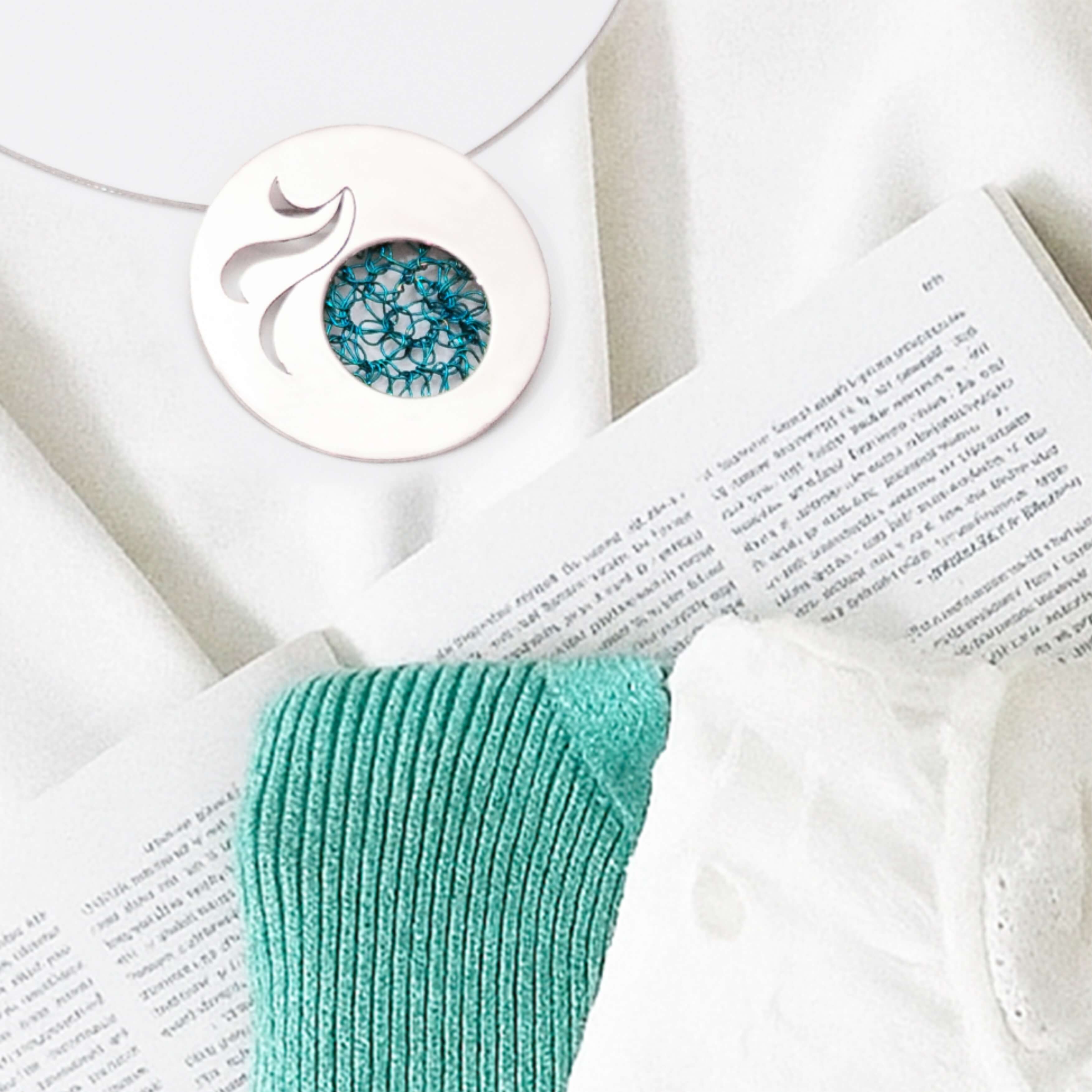 El colgante Conexo combina la delicadeza de las formas circulares con la textura del TEJIDO A MANO. Un diseño MODERNO que transmite frescura, personalidad y ORIGINALIDAD, con detalles únicos que convierten lo cotidiano en ESPECIAL.