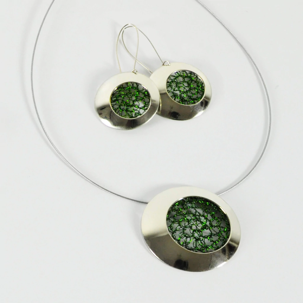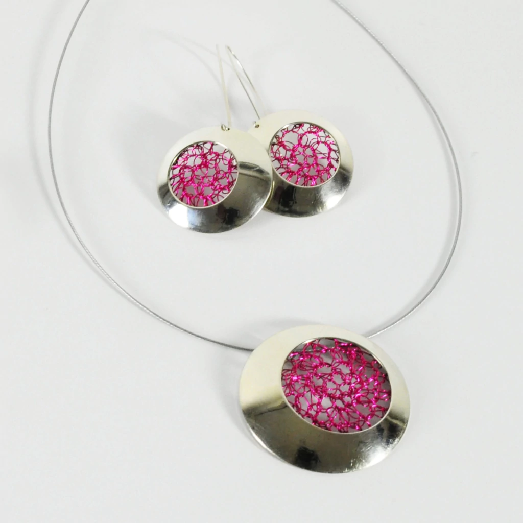 - Alambre esmaltado tejido a mano con aguja de crochet. Colores brillantes inalterables. No se oxida ni mancha la piel.