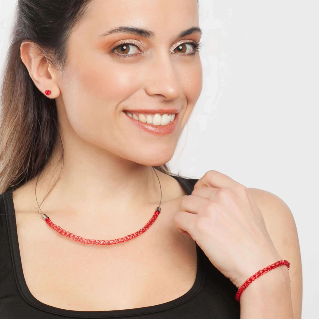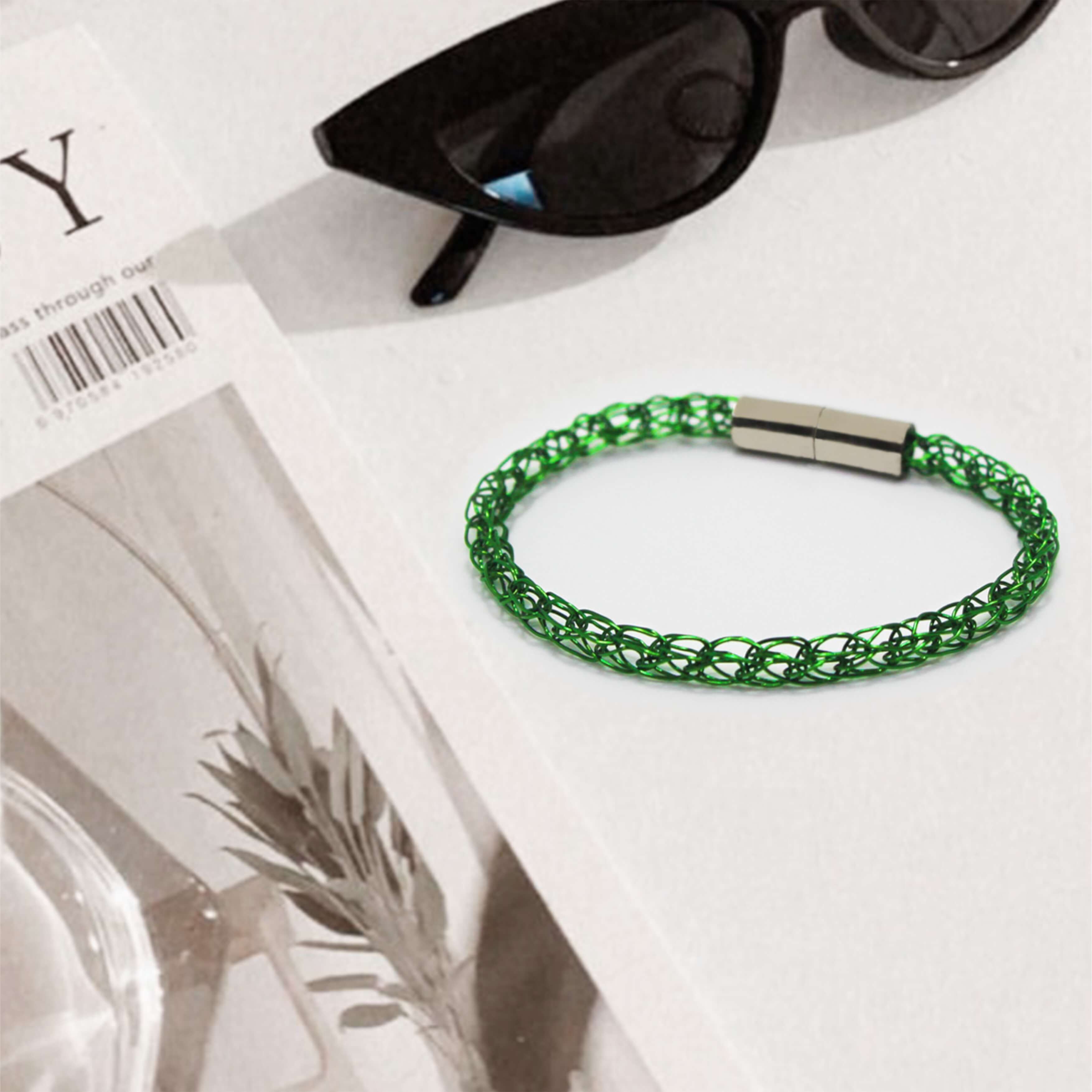 - Alambre esmaltado tejido a mano con aguja de crochet. Colores brillantes inalterables. No se oxida ni mancha la piel.