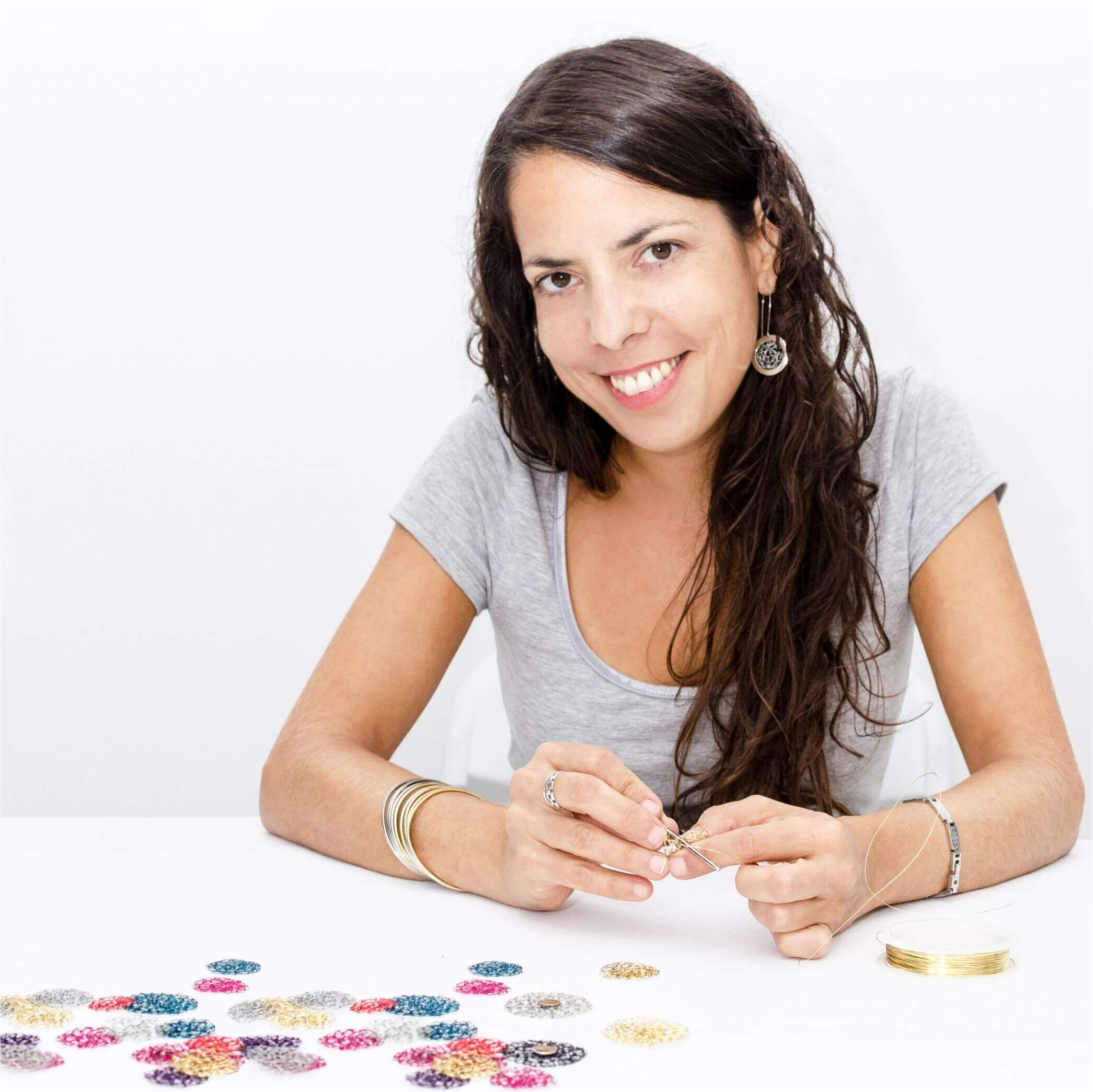 Durante unas vacaciones en la costa atlántica, descubrí el universo de modelado de alambre, de la mano de un artesano. De regreso a la gran ciudad adquirí mi primera pinza rosario y comencé a experimentar y a practicar con mucha tenacidad y paciencia.